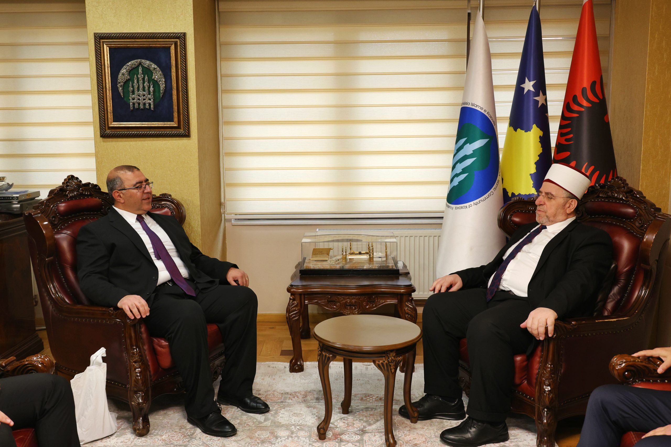 Kryetari i Bashkësisë Islame të Kosovës, Myftiu Naim ef. Tërnava, priti sot në takim një delegacion nga Drejtoria e Përgjithshme e Vakëfeve të Republikës së Turqisë, i përbërë nga Mehmet Ali Palalı, drejtor i Vakëfeve për rajonin e Şanlıurfës, Adem Bacanlı, drejtor i Vakëfeve për rajonin e Malatyas, si dhe Mehmet Batuhan Geçer, zyrtar nga Departamenti për Marrëdhënie me Jashtë në Drejtorinë e Përgjithshme të Vakëfeve.